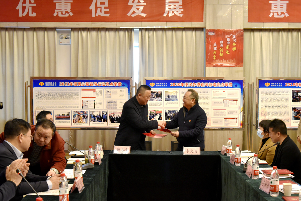 會(huì)上,市稅務(wù)局黨委書記、局長雷浩首先致辭講話,隨后市稅務(wù)局黨委委員、副局長張忠友解讀了2022年度“我為納稅人繳費(fèi)人辦實(shí)事暨便民辦稅春風(fēng)行動(dòng)”工作方案及具體措施,市稅務(wù)局納稅服務(wù)科科長楊進(jìn)宣讀了襄陽市稅務(wù)系統(tǒng)春風(fēng)行動(dòng)“十項(xiàng)承諾”;舉辦了稅企對(duì)接儀式,為10名“春風(fēng)行動(dòng)稅務(wù)體驗(yàn)師”和10名“專精特新”企業(yè)服務(wù)專員頒發(fā)了聘書;公司黨委書記李總和高新區(qū)稅務(wù)局黨委書記顧志峰共同簽訂了《稅企黨建結(jié)對(duì)共建協(xié)議書》,顧志峰書記還代表稅務(wù)部門作了表態(tài)發(fā)言;最后,舉辦了企業(yè)家代表座談,10名參會(huì)的企業(yè)家圍繞稅務(wù)部門服務(wù)質(zhì)效、便民辦稅春風(fēng)行動(dòng)和稅收宣傳月等工作建言獻(xiàn)策,提出了意見建議。