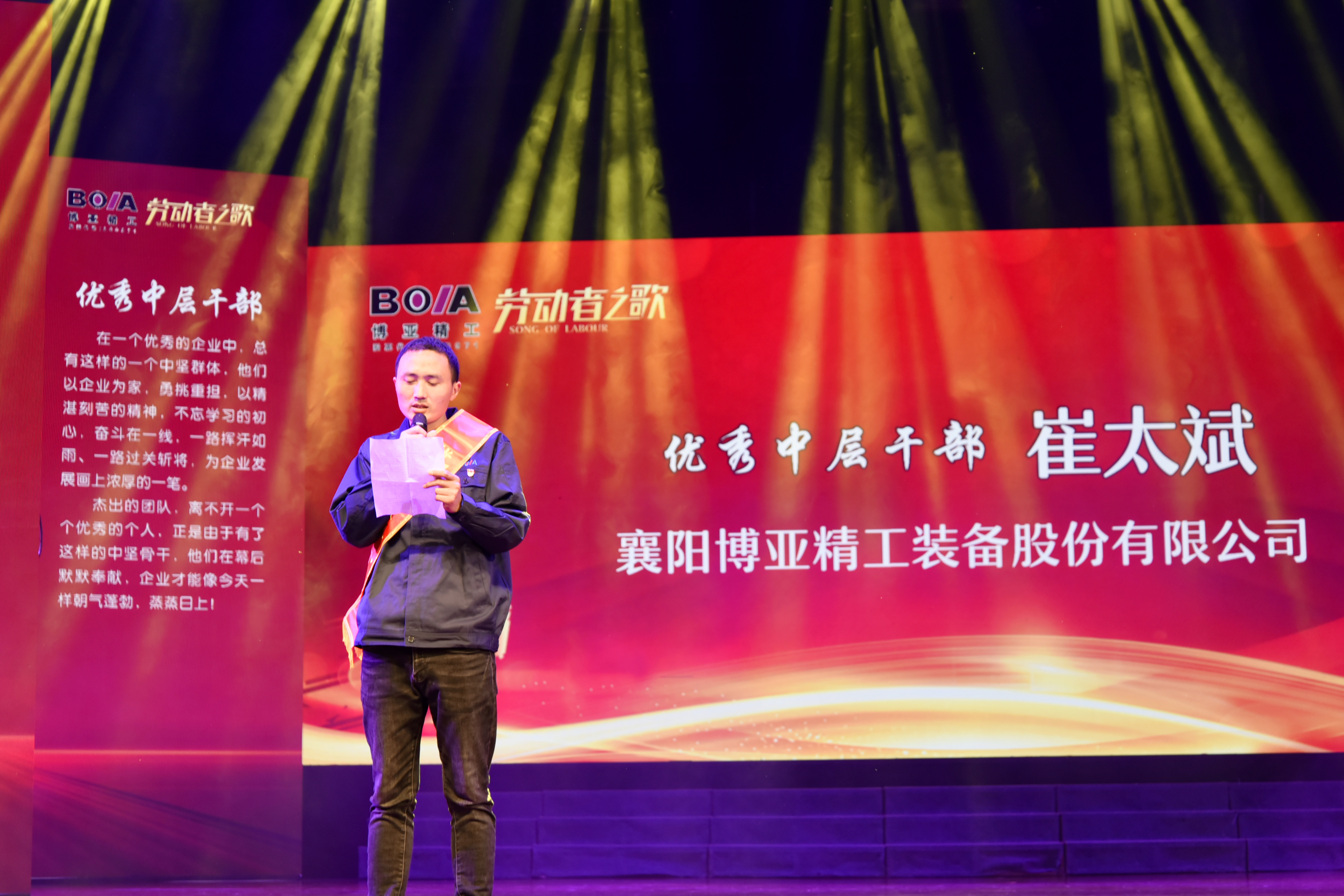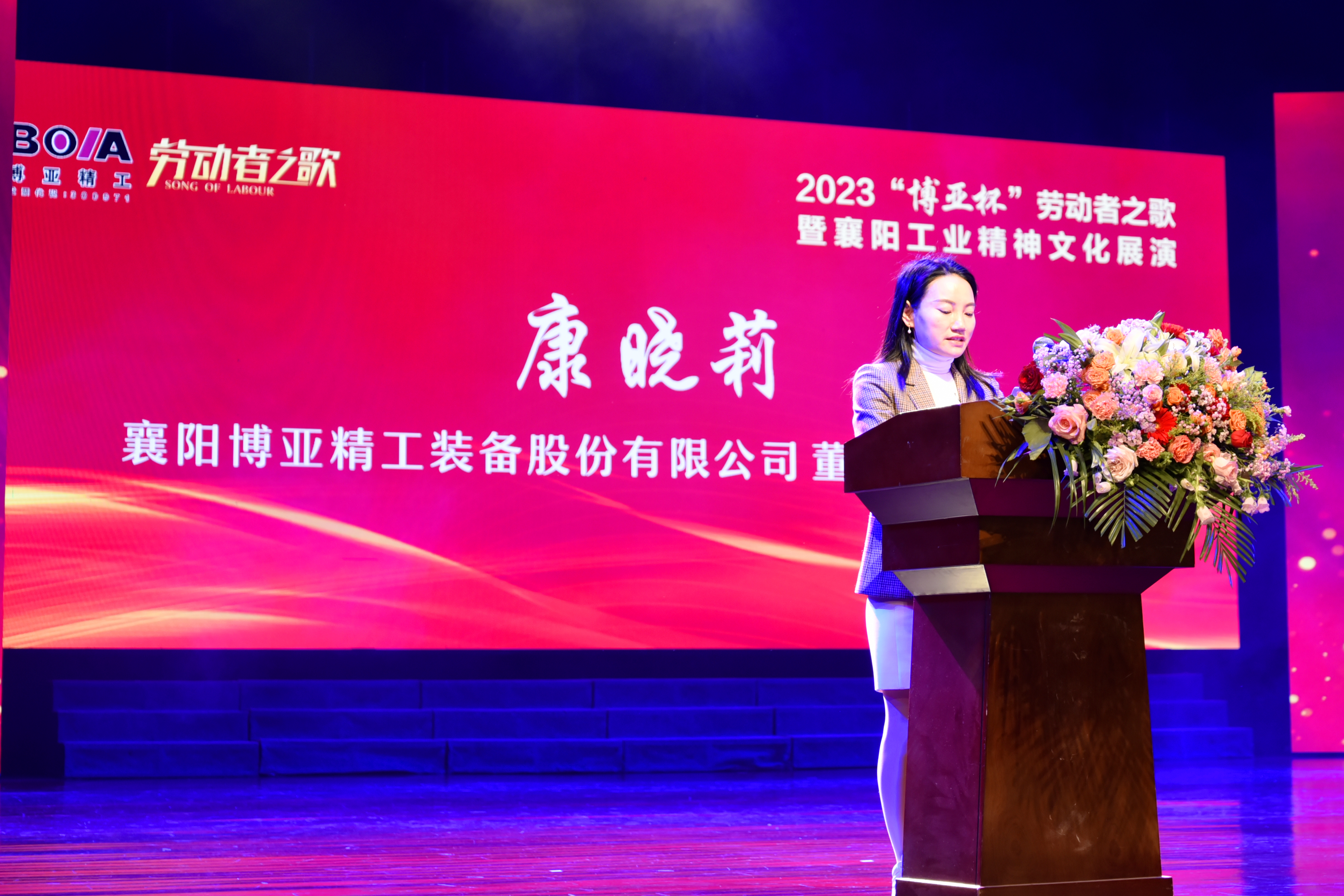 用汗水書寫歷史,用勞動奏響贊歌。2023年4月27日下午,經(jīng)市委市政府批準,在市經(jīng)信局指導下,由公司冠名贊助舉辦的第五屆“博亞杯”勞動者之歌暨襄陽工業(yè)精神文化展演活動,在襄陽劇院隆重舉行。襄陽市政府黨組成員張方晶,市人大常委會副主任王紹玲,市政府副秘書長潘峰,市委組織部、市委宣傳部、市委統(tǒng)戰(zhàn)部、市委人才辦、市經(jīng)信局、市人社局、市科技局、市總工會、市工商聯(lián)、市文明辦、襄陽日報社、襄陽電視臺、市中小企業(yè)發(fā)展服務中心等市直有關部門和相關單位的領導,襄陽市企聯(lián)、市各商協(xié)會和百強企業(yè)代表及嘉賓蒞臨出席活動。公司董事、財務總監(jiān)康曉莉出席活動并上臺致辭。